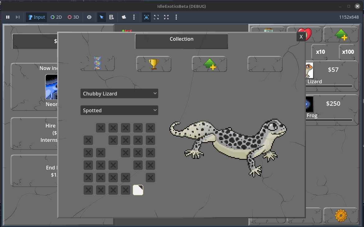 But the collection menu isn't all that's new this patch. I've implemented another new feature that's a staple for most idle games: the buy multiple button.